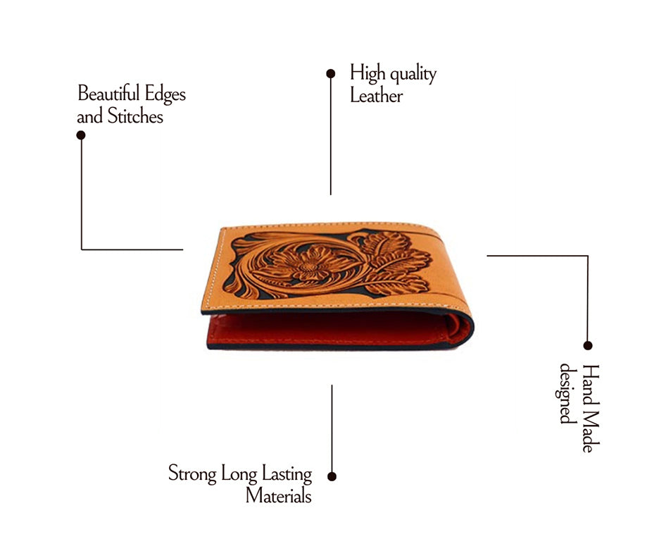 - PERFECT GIFT & GIFT BOX: Are you Looking for a great gift idea for someone who loves HandTooled leather products? Our Western-style genuine leather wallet for men could be the perfect choice! These wallets are crafted with great attention to detail and are suitable for both men and women. They make a great present for various occasions such as birthdays, anniversaries, parties, and weddings. Not only are they stylish, but they are also durable and will serve you well for a long time also coming with a nice gift box so you can give it to your loved ones right after arrival.